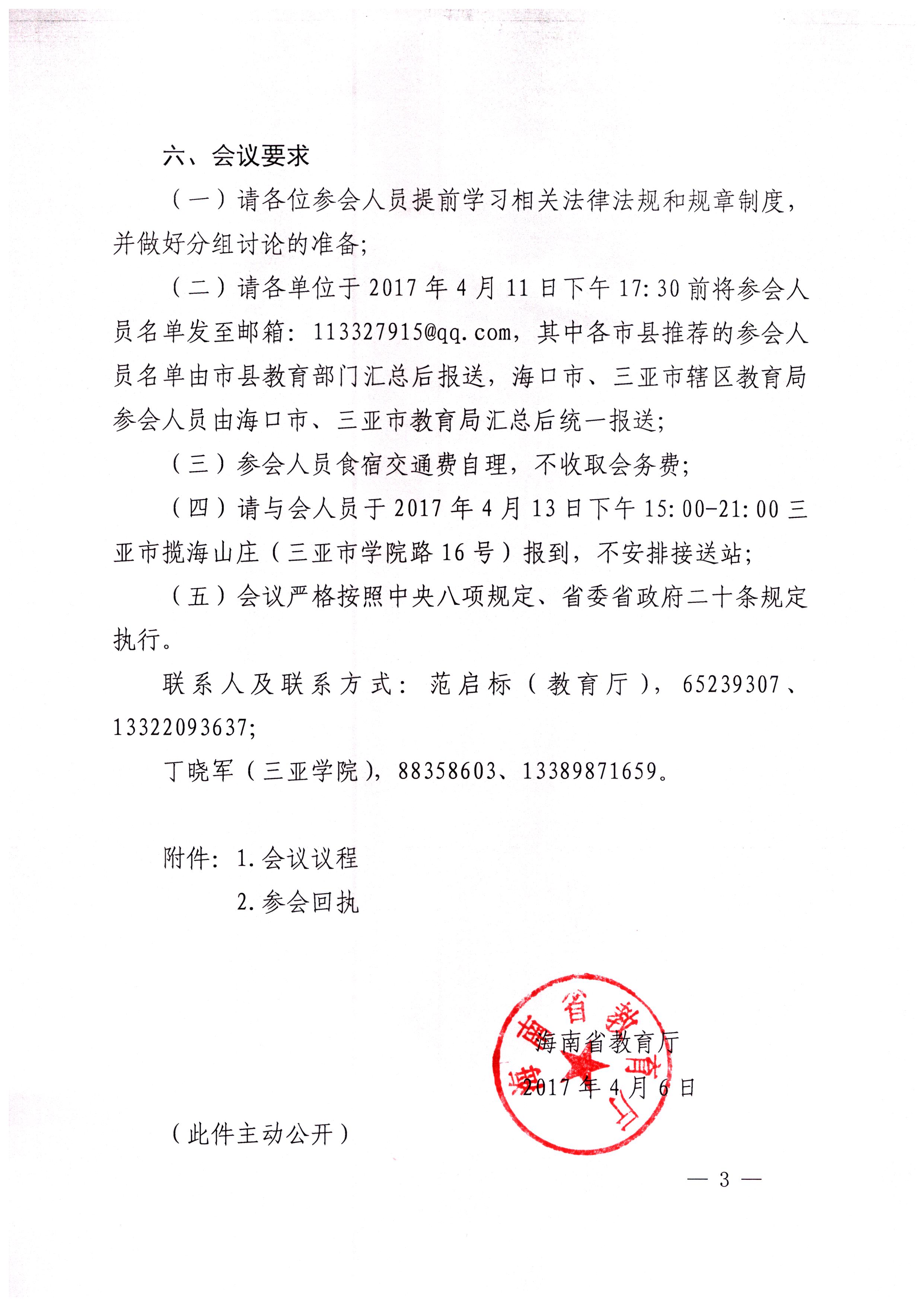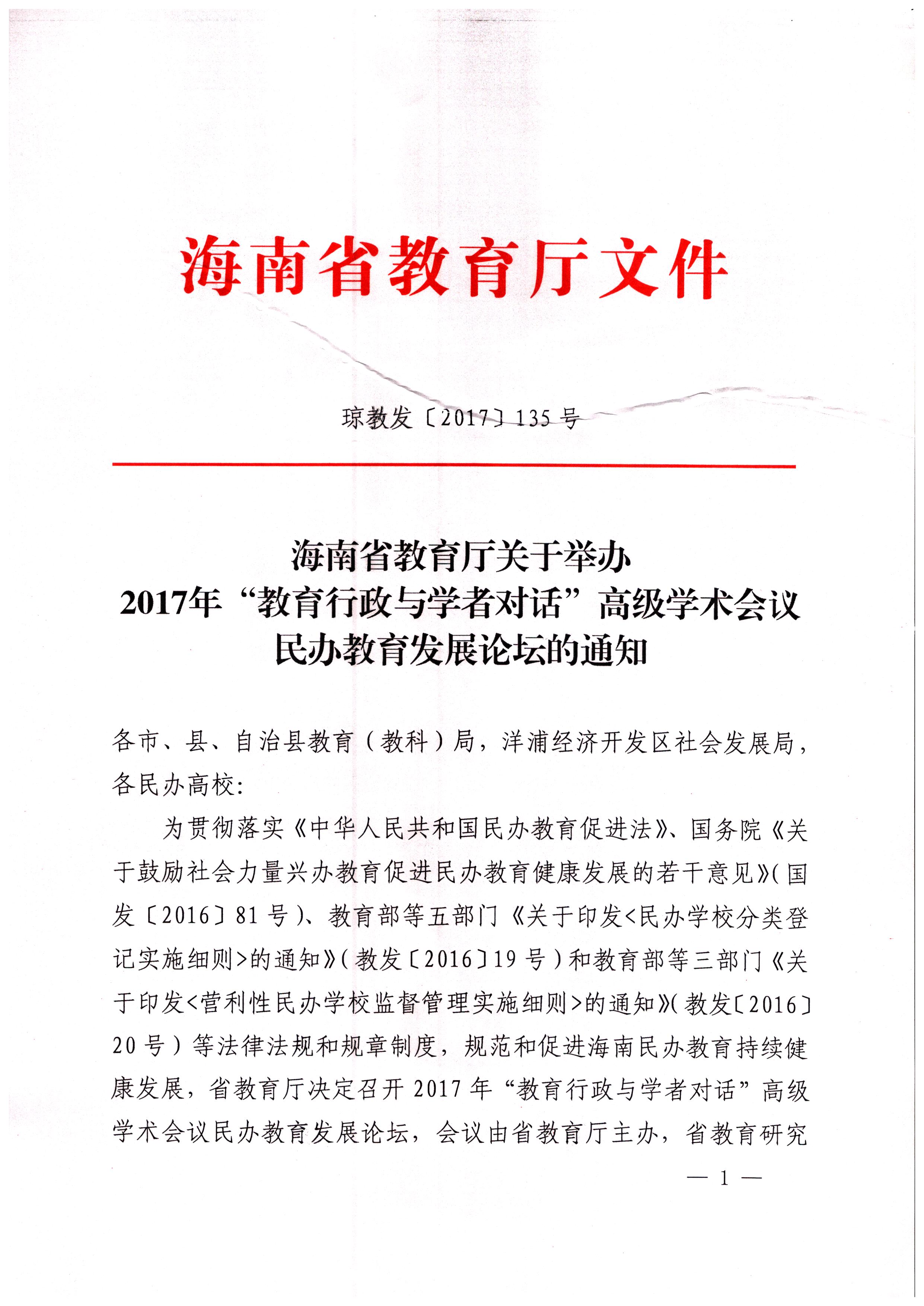 海南省教育厅关于举办2017年“教育行政与学者对话”高级学术会议民办教育发展论坛的通知